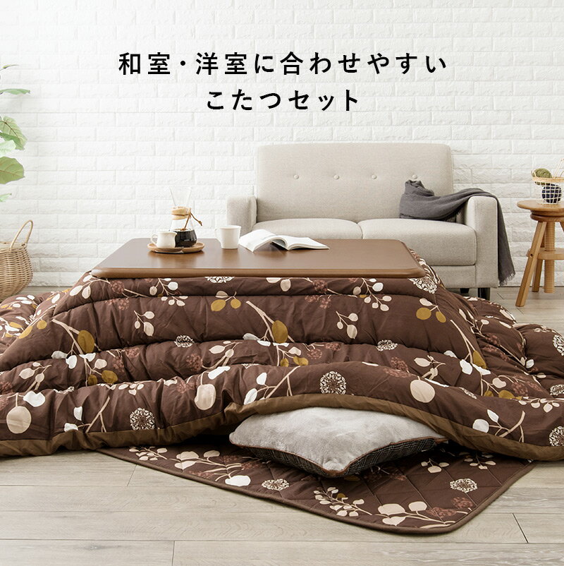 お買い物ガイド 届いてすぐ使える、こたつテーブル+掛け布団+敷布団のお得な3点セット。