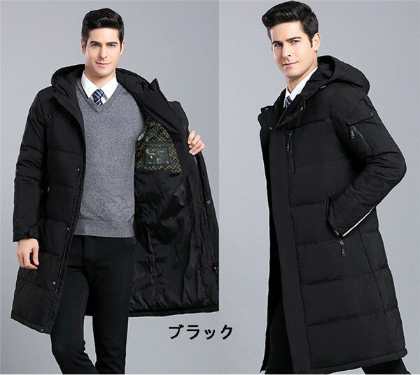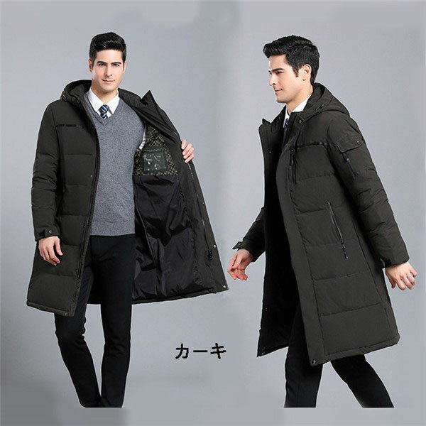 ロング ダウンコート メンズ ダウン フード付き 暖かい フェザー フード コート 防寒服 紳士 冬 通勤 黒 グレー カーキ eg167c0c0n1