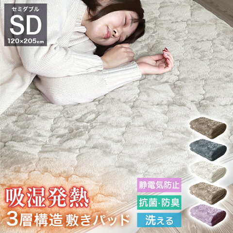 【送料無料】ふわふわ 敷きパッド あったか 秋冬用 セミダブル 120×205cm 吸湿発熱 抗菌 防臭 敷き毛布 ベッドパッド パッドシーツ マイクロファイバー フランネル 暖かい 軽い 洗える 洗濯可能 おしゃれ 送料無料