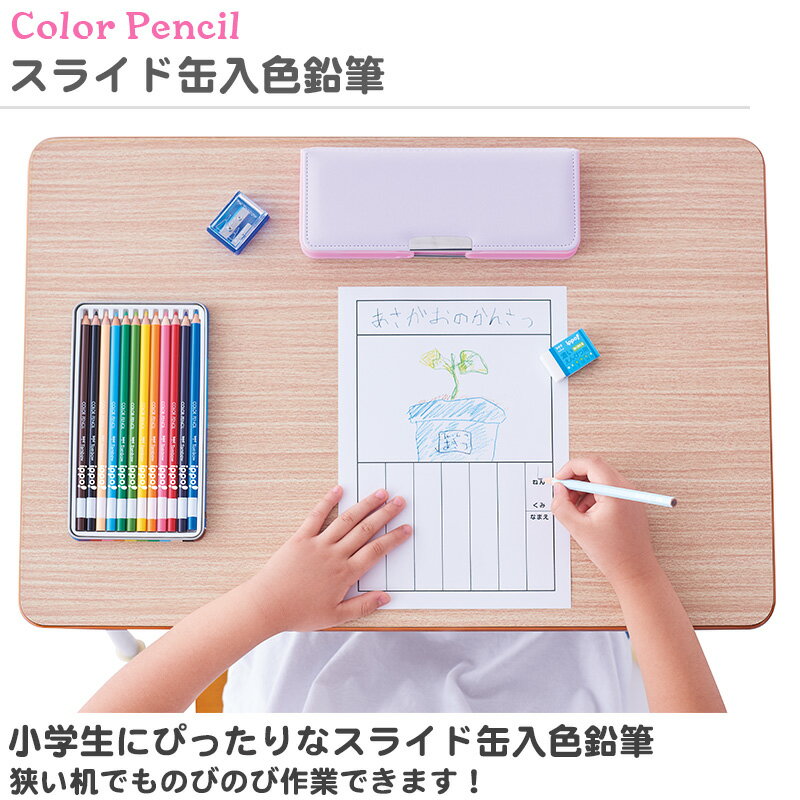 *その他名入れについてのFAQはコチラ!商品特徴 -小学生にピッタリの色鉛筆- ■小学生にぴったりなスライド缶色鉛筆! ■開けやすくて使いやすいスライド式缶入りの色鉛筆セットです。
