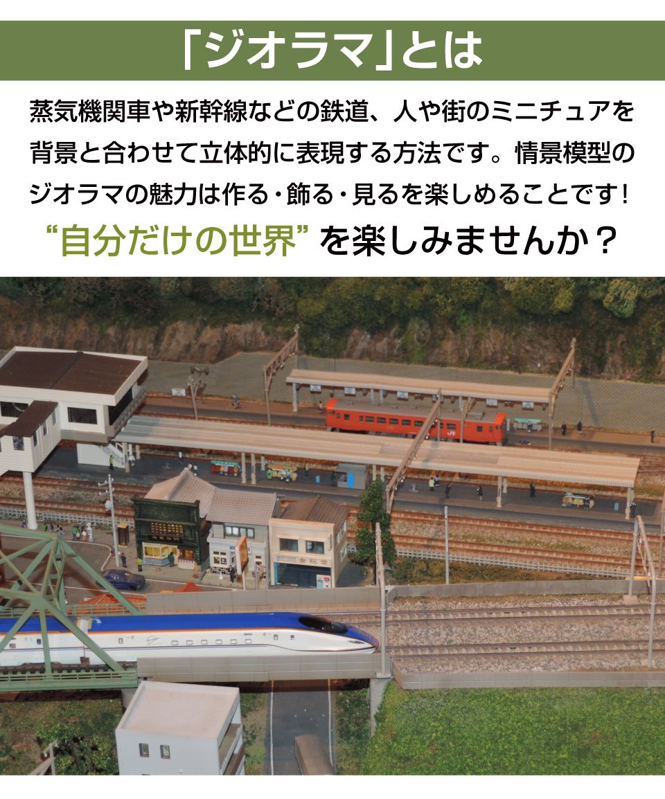 ・鉄道や人、街などを背景と合わせて立体的に表現したジオラマには、様々な魅力があります。