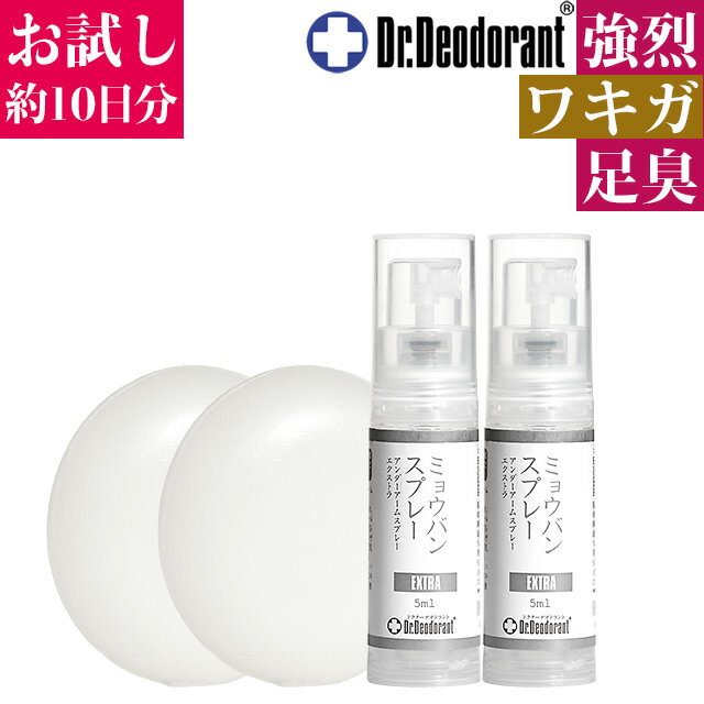 わきが対策 ミョウバンスプレーEX2本 & ミョウバンせっけんEX2個 トライアルセット 約10日分 ワキガ 足の臭い お子様も女性も安心 肌にも優しい みょうばん ミニ石鹸+ミニスプレー お試しセット ドクターデオドラント 初回購入者様限定 次回500円OFFクーポン同梱プレゼント