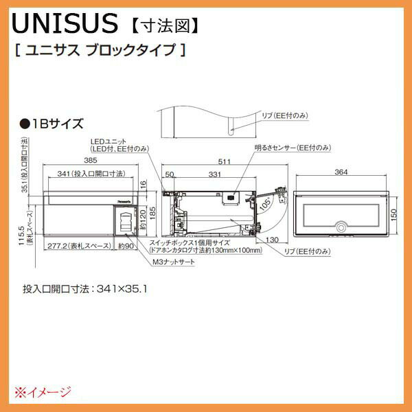■パナソニック ユニサス ブロックタイプ 1Bサイズ ダイヤル錠/LED照明・明るさセンサー付 埋め込み エイジングブラウン CTCR7613MA 埋め込みポスト ユニサス ブロックタイプ 1Bサイズの商品説明 商品名 ユニサス ブロックタイプ 1Bサイズ カラー エイジングブラウン 仕様 ダイヤル錠/LED照明・明るさセンサー付 設置タイプ 埋め込み 商品詳細 ・材 質:前面板:ASA樹脂(アクリル焼付玉吹き塗装) 投入口蓋、底板:ASA樹脂 本体:ZAM鋼板(紛体塗装) 裏蓋:PC樹脂 ・サイズ:前面板:幅385×高さ185×厚み50(mm) 全体:幅385×高さ185×奥行381(mm) ・投入口開口サイズ:幅341×高さ35(mm) ・重 さ:4.0kg 備考 ドアホン子器・カメラ化粧カバーは別売りです。