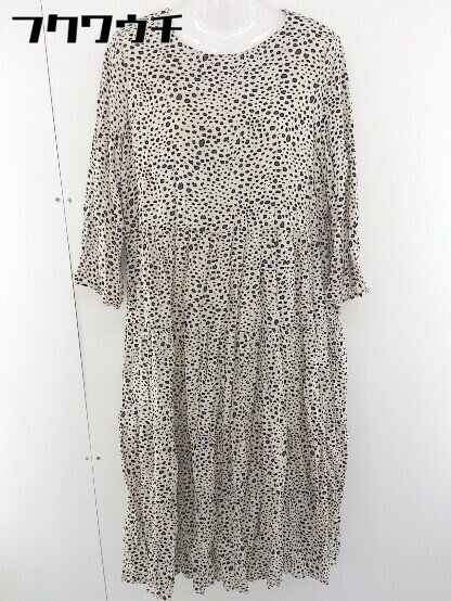 ◇ ROPE PICNIC ダルメシアン柄 ティアード 長袖 膝下丈 ワンピース サイズ 38 ベージュ ブラック レディース 【中古】